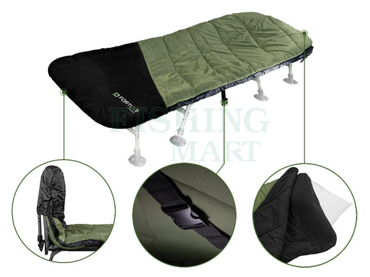 Oba końce tego śpiwora posiadają rękawy mocujące do łóżka oraz pasek z masywnym klipsem w środkowej części, który zapobiega skręcaniu się FORTIXa.