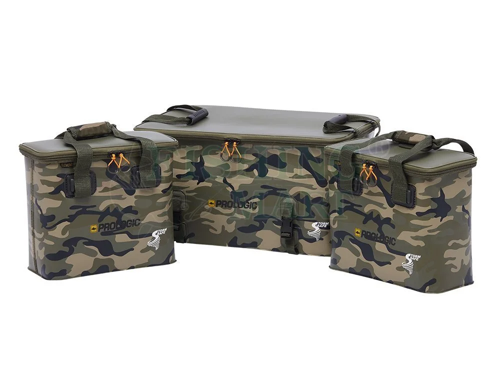 Dostępne są trzy opcje – jedna duża torba i dwie średniej wielkości, wszystkie idealnie pasują do kompaktowej ramy wózka karpiowego Element. Duża torba jest idealna do przechowywania zapasowych suchych ubrań i dużych przedmiotów, może również pomieścić dwa kwadratowe wiadra. Dwie średnie torby, pierwsza wyłożona od wnętrza izolacją termiczną oraz druga standardowa, mogą być umieszczone po bokach wózka – równoważąc go, więc są idealne dla cięższych przedmiotów, takich jak przynęty, jedzenie lub napoje.